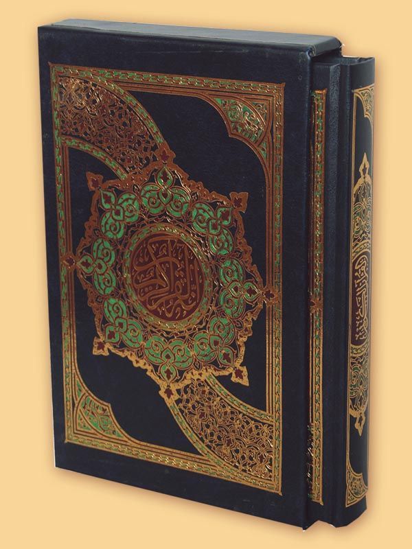 Half-sized Qur’anic Copy (14×20) cm. Mushaf al-Nisf (14×20) distinct, tilted decoration, cream, couche paper, gilded, hard cover with a carton Weight: 800