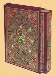 Mus'haf quart format (17x12) cm Quadrichromie, papier couché brillant, Bordure dorée, reliure d'art, avec emboîtage, de luxe poids: 600g