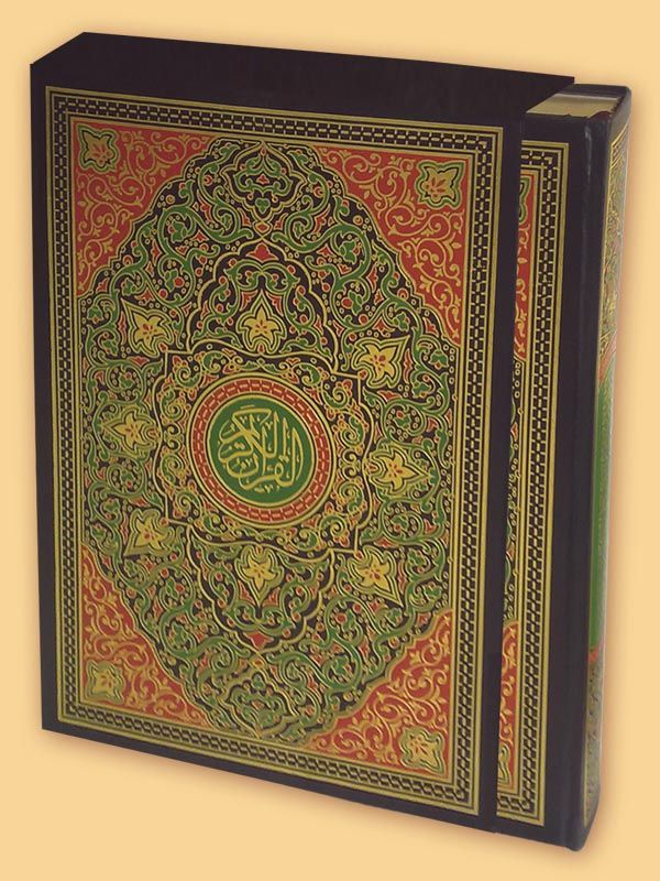 Mus'haf grand format (35x25) cm Quadrichromie - papier chamois A bordure dorée, reliure d'art,