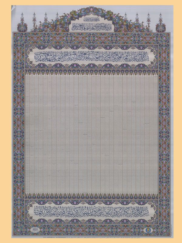 لوحة ملونة من الكرتون تتضمن القرآن الكريم كاملاً