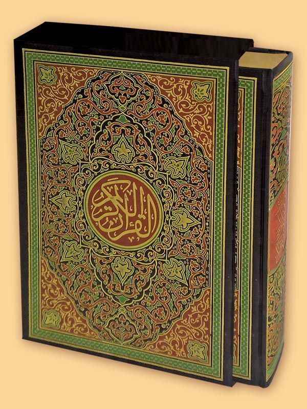 Mushaf al-Rub’ (12×17) cm. four colors - glossy couche paper, gilded sides, hard cover, in a carton, deluxe Weight: 600g